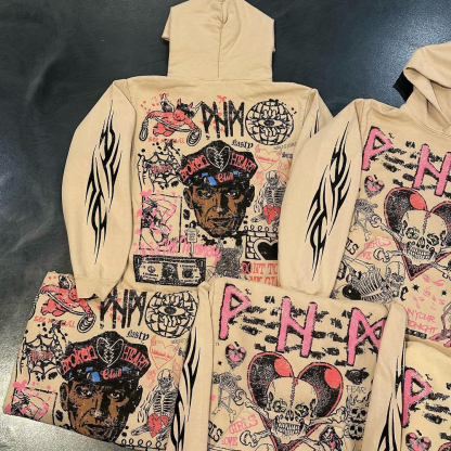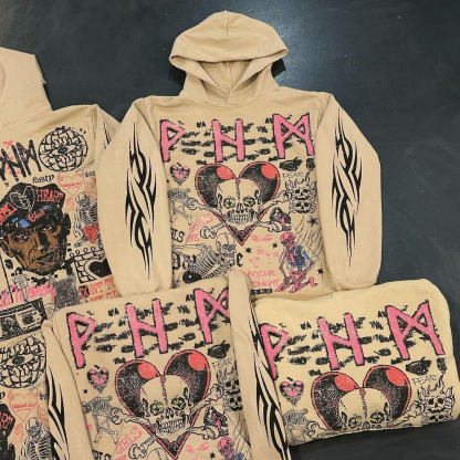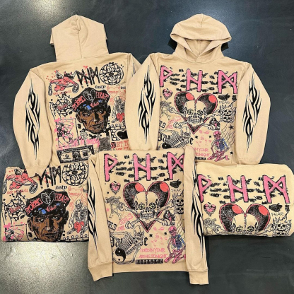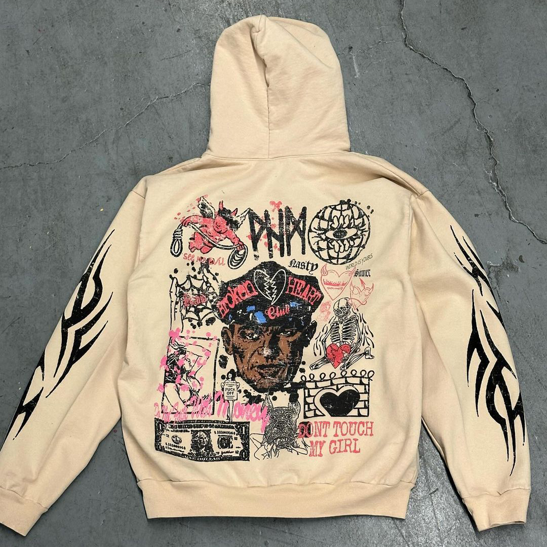 Multi-element Print Long Sleeve Hoodies