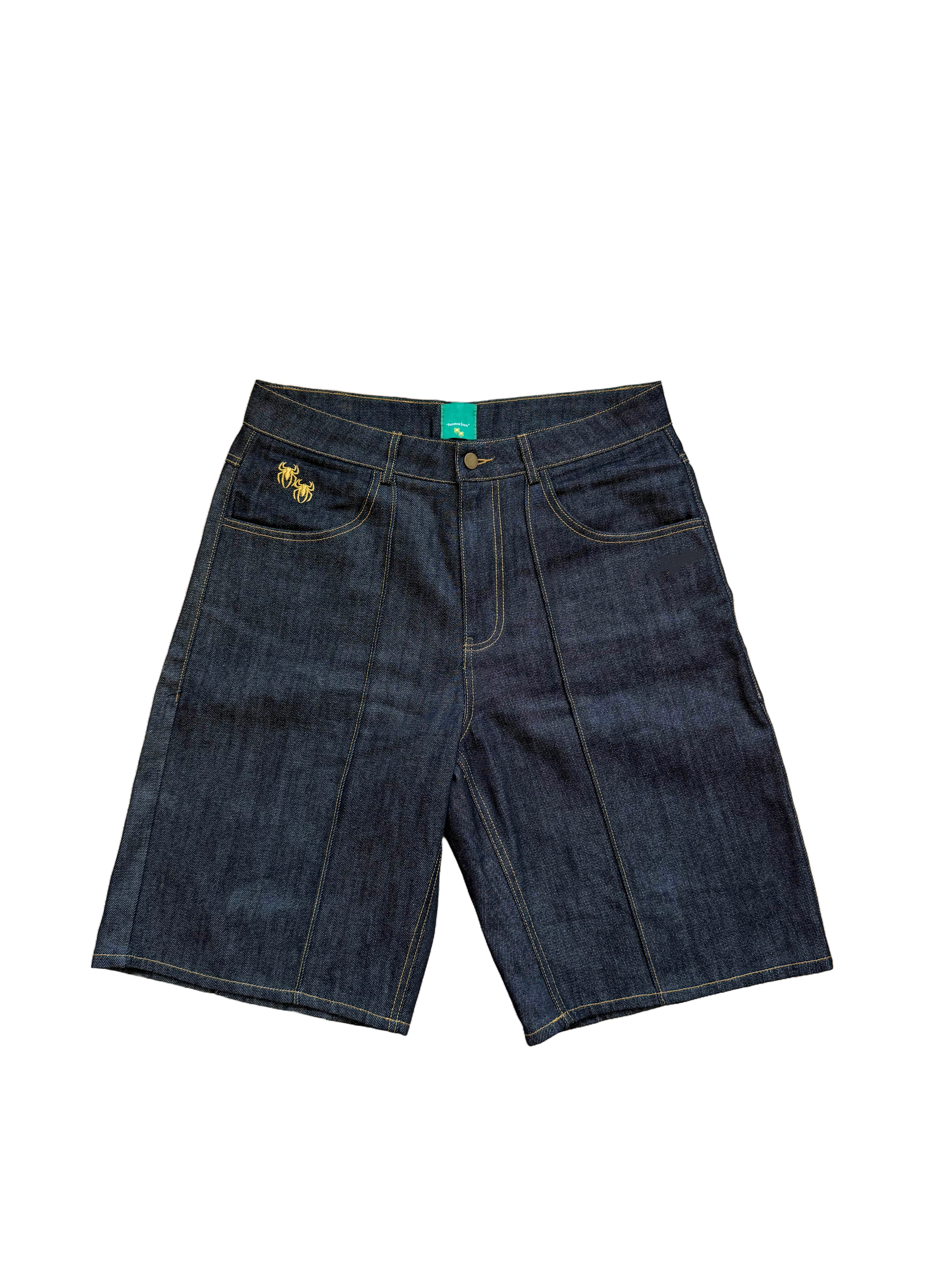 RAW DENIM PLEATED JORTS