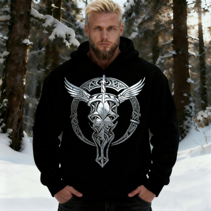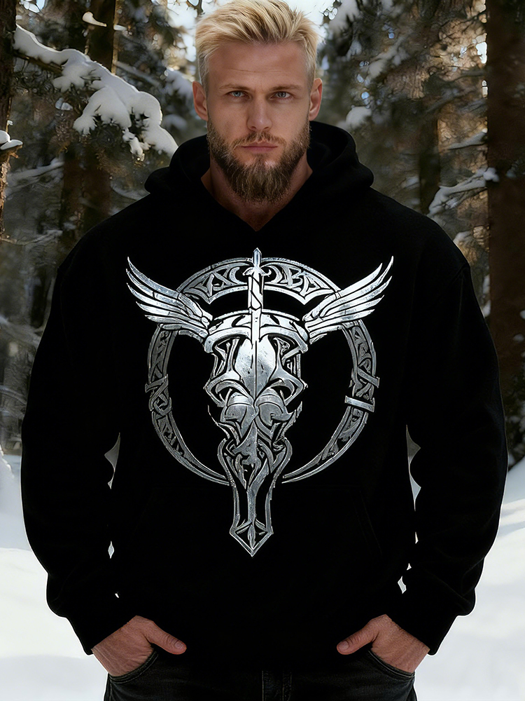 Simpfit Herren-Hoodie mit Wikinger-Motiv und silbernem Stierkopf