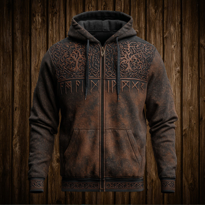 Simpfit Herren-Retro-Wikingerjacke mit Lebensbaum- und Runenmotiv